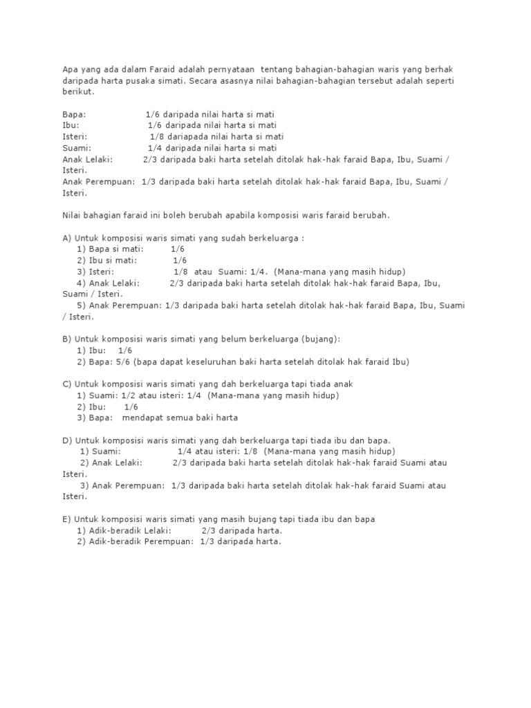 Apa Itu Faraid Dan Bagaimana Pengiraan Faraid Di Buat Aku Sis Lin
