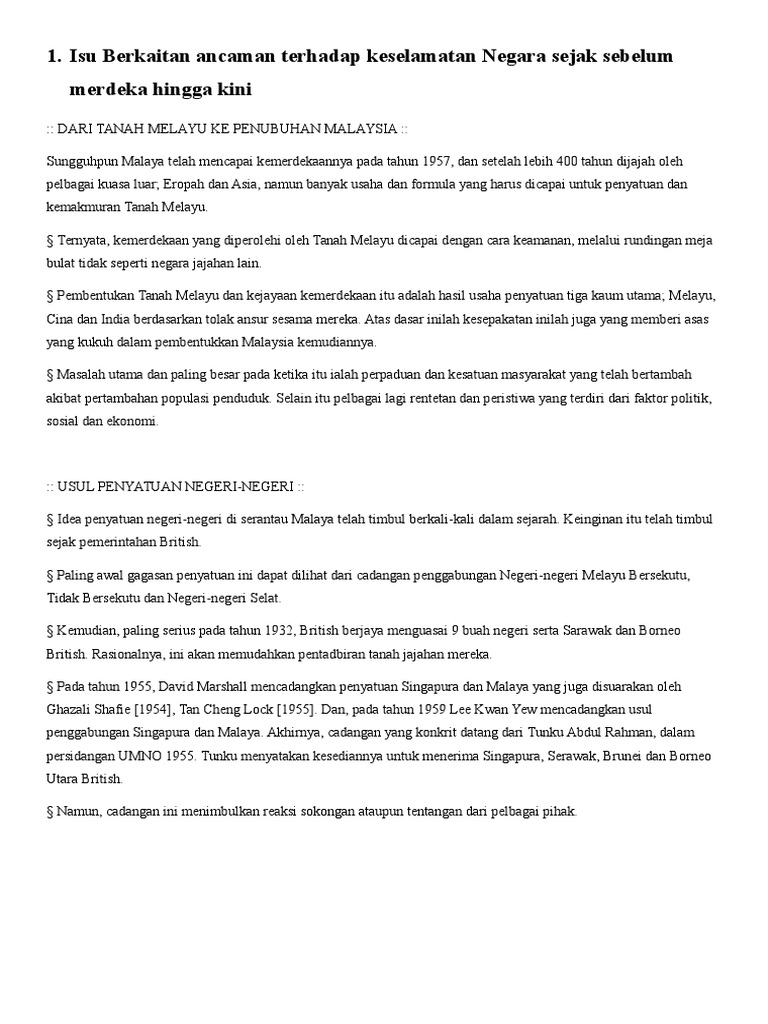 Isu Berkaitan Ancaman Terhadap Keselamatan Negara Sejak Sebelum Merdeka Hingga Kini