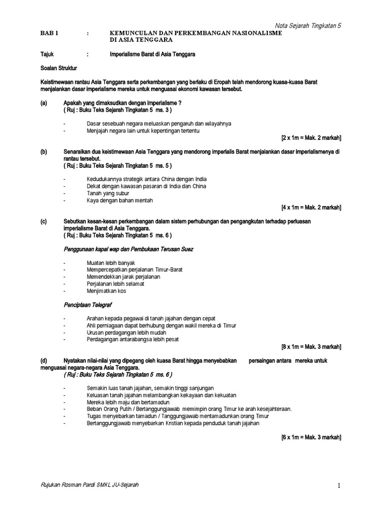 Contoh Soalan Kertas 3 Sejarah Tingkatan 5 Bab 5 J Kosong W