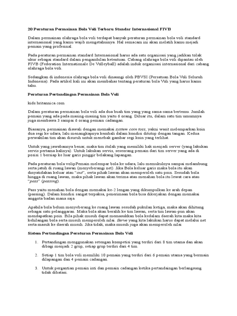 20 Peraturan Permainan Bola Voli Terbaru Standar Internasional Fivb