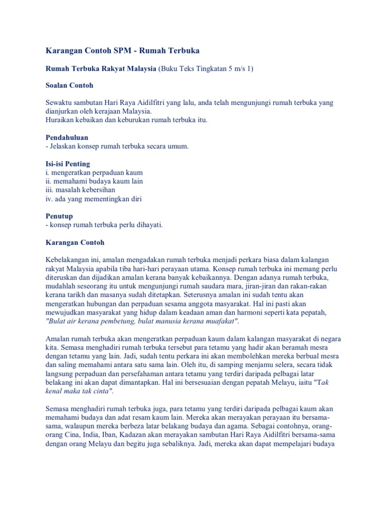 Laman Bahasa Melayu Spm Karangan Kepetingan Rumah Terbuka Di Malaysia