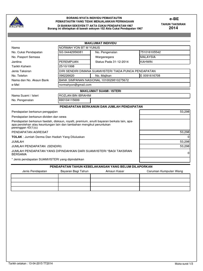 Pdf Borang Nyata Individu Pemastautin Di Bawah Seksyen 77 Akta Cukai Pendapatan 1967 Borang Ini Ditetapkan Di Bawah Seksyen 152 Akta Cukai Pendapatan 1967 Pemastautin Yang Tidak Menjalankan Perniagaan E Be Pendapatan Tahun