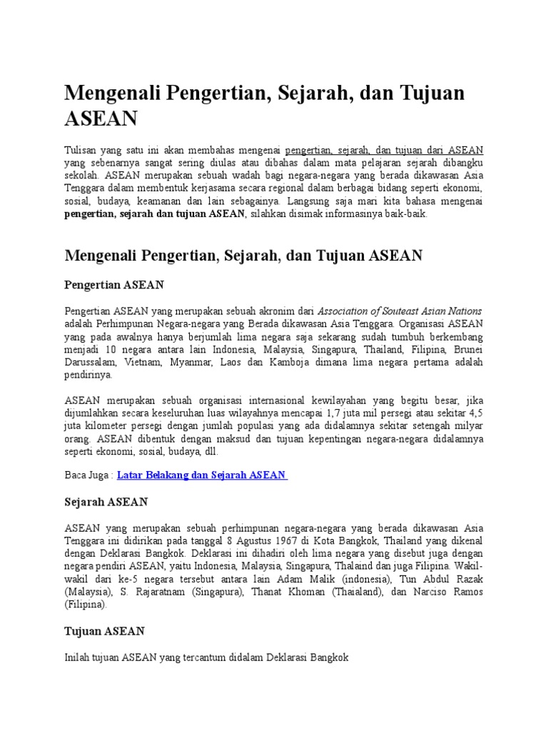 Asean Dibentuk Pada Tanggal 8 Agustus 1967 Di Brainly Co Id