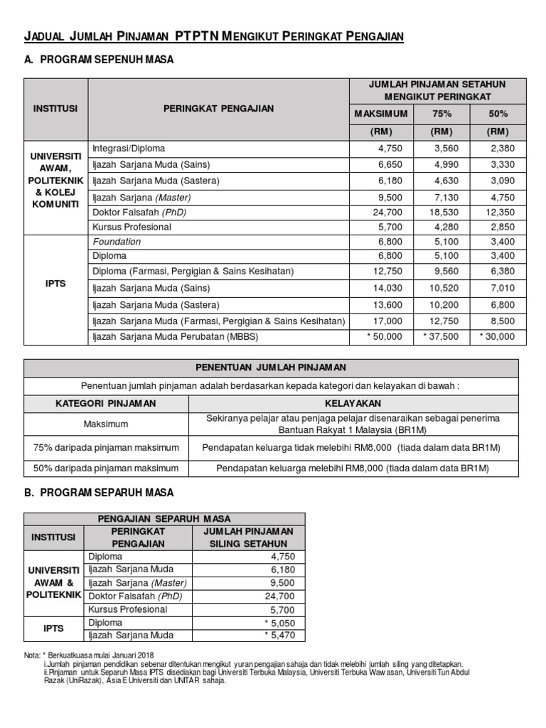 Jadual Jumlah Pembiayaan Ptptn Mengikut Peringkat Pengajian Brosur