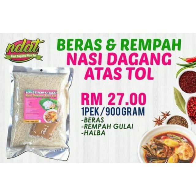 Beras Dan Rempah Gulai Nasi Dagang Atas Tol Ndat 100 Original Terengganu Shopee Malaysia