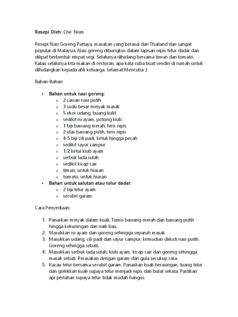 Resepi Oleh Che Nom O O O O O O O O O O O O O