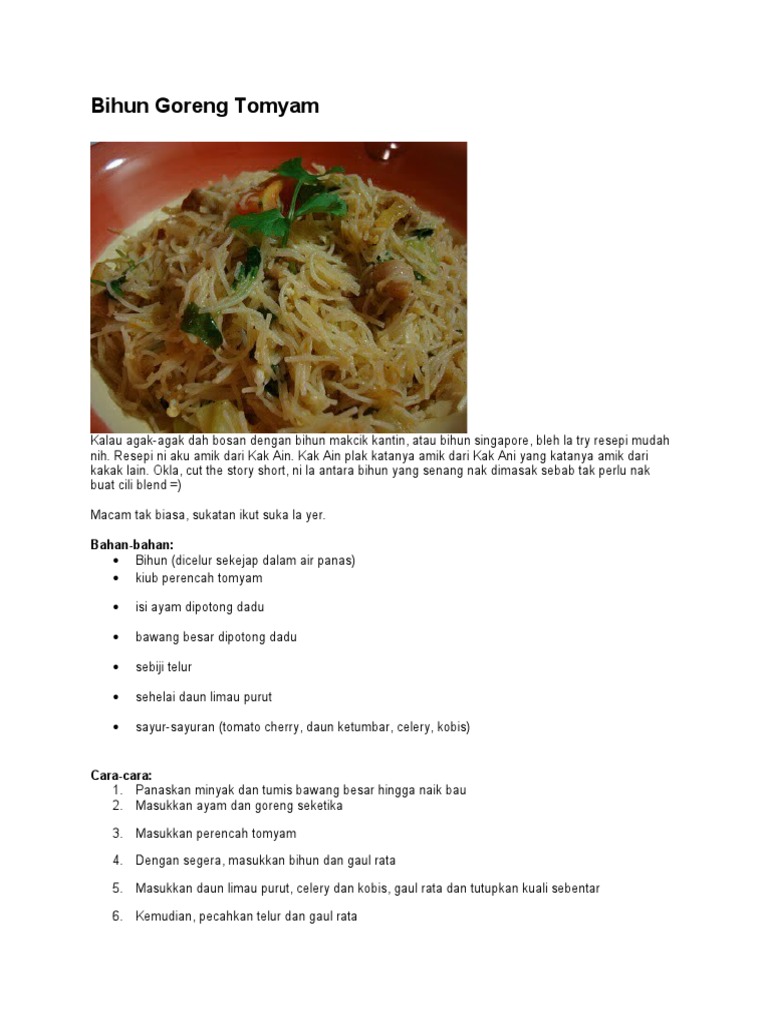 Nasi Goreng Tomyam Myresipi Com
